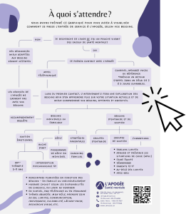 Par ses différents programmes et services offerts gratuitement, l’équipe de L’Apogée est là pour vous écouter, vous informer, vous outiller, et vous permettre d’échanger avec d’autres personnes vivant une situation semblable à la vôtre. Il faut de la force et du courage pour demander de l’aide. Heureusement, notre équipe de professionnels dévoués et engagés est là pour vous aider à vous ressourcer et à ne plus vous sentir seul !